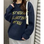 ニット セーター 配色ロゴジャガードオーバーサイズニット レディース