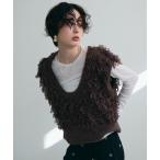 ベスト ジレ ループ編みUネックニットベスト レディース