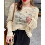 ニット セーター 「S-LL/洗える/UV」お袖シアーでヘルシーに フレアスリーブサマーニット レディース