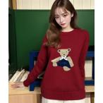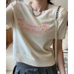 ニット セーター リボン刺繍ニットプルオーバー/半袖ニットトップス レディース