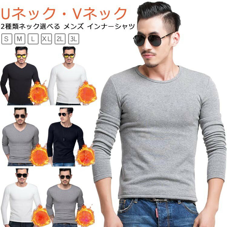 【楽天スーパーSALE30%OFF】2枚セットメンズ長袖tシャツヒートテック長袖VネックUネック丸首スリム細身肌着インナーヒートインナーアンダーシャツ薄手無地ストレッチインナーシャツ