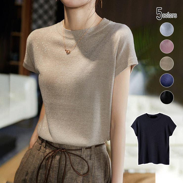 【4時間限定!30%OFFクーポン!】ミスウェディー レディース トップス プルオーバー 半袖 夏トップス Uネック きれいめ オフィス ラウンドネック ラグラン ラメ入り サマーニット フェミニン ブラウス 半袖 涼しい お洒落 シンプ