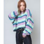 ニット セーター K2659 シャギーボーダーショート丈プルオーバー レディース