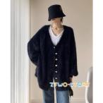 カーディガン 2-10B3 深 Vネック 2way シャギー ニット レディース