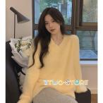 ニット レディース 秋冬 長袖 シャギーニット Vネック セーター トップス 白 ニットセーター シンプル カジュアル ゆったり 冬 秋 ふわふわ 韓国
