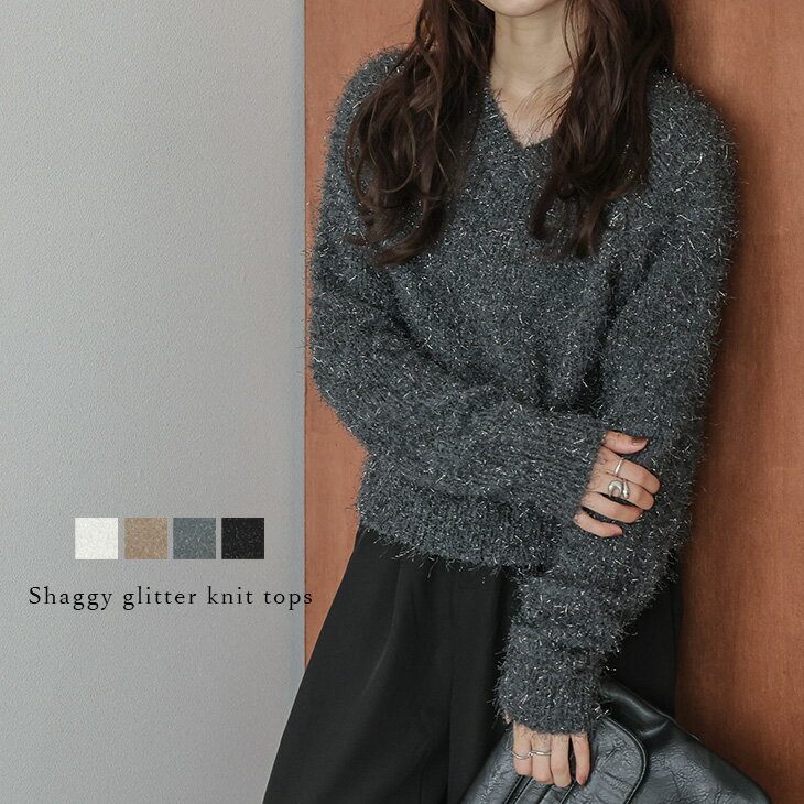 【60%OFFクーポン対象】ラメ シャギー ニット 前後 Vネック 着回しアイテム 長袖 大人カジュアル フェミニン トップス レディース おすすめ おしゃれ 2025秋冬新作 【lstpaw25-1599】【即納:1-5営業日】【送料無料】メ込3
