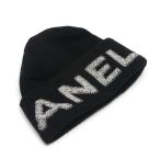 シャネル CHANEL ロゴニットキャップ ウール カシミヤ ブラック