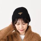 PRADA プラダ ニット帽 ウール ビーニー 1HC390 2DZL レディース NERO ブラック バージンウール カシミヤ 帽子 トライアングルロゴ 秋冬 ロゴ
