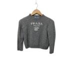 美品☆PRADA プラダ 2023年製 P24S1L バージンウール カシミヤ ロゴ入り 長袖 ニット グレー 36 イタリア製 正規品 レディース