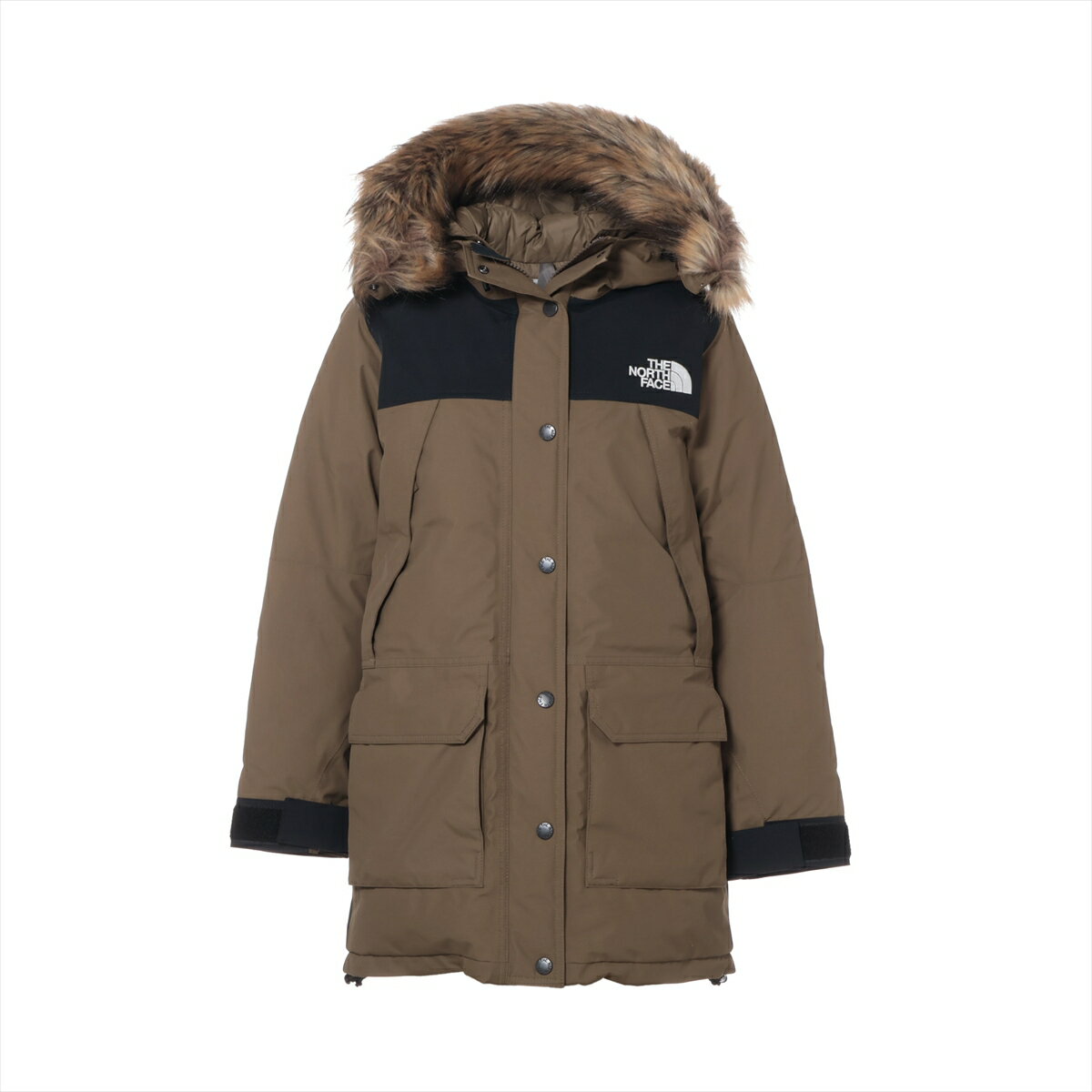 【中古】ノースフェイス ナイロン ダウンジャケット M レディース カーキ NDW91835 MOUNTAIN DOWN JACKET GORE-TEX ファー取り外し可