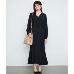 ワンピース 「薄くて軽いジョーゼット」ドレープフレアワンピース