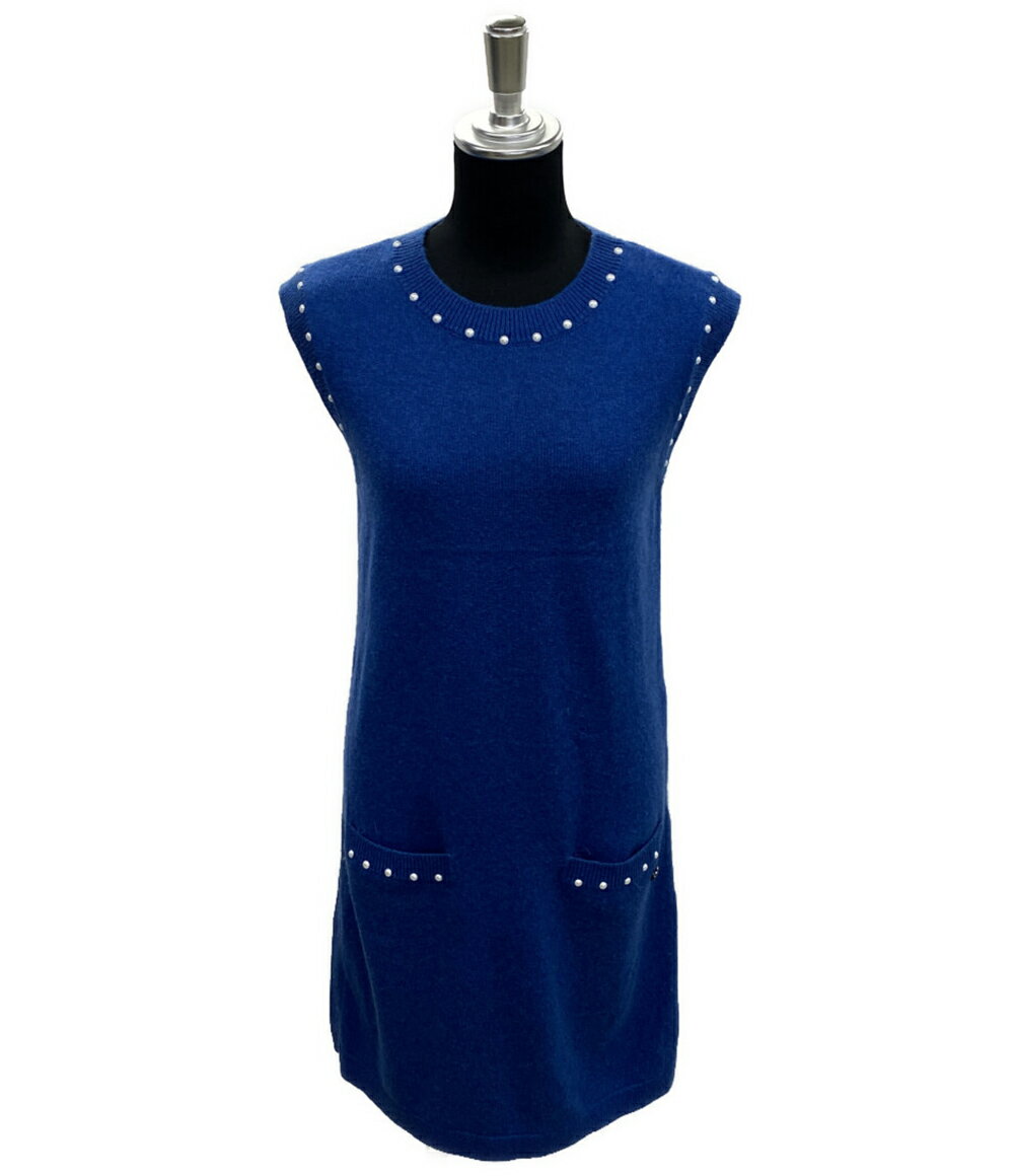 【全品5%OFFクーポン30日23:59迄】【中古】 シャネル ノースリーブパールワンピース ブルー P53637 レディース SIZE 34 CHANEL