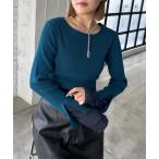 ニット セーター 華奢見え叶える程よいフィット感。配色メロウリブニットトップス(長袖) レディース