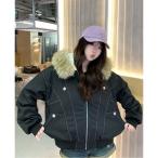 ブルゾン アウター 韓国カジュアル ショート丈 ファーフード中綿アウター レディース メンズ