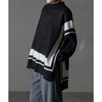 ニット セーター 幾何学柄サイドライン配色ハイネックニット レディース