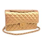 シャネル マトラッセ25 ランダムシリアル ラムスキン メタリックゴールド ダブルフラップ ゴールド金具 中古 送料無料