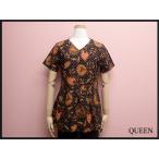 NICE CLUB by MIMO MODA 40 レディース ポロシャツ 花柄 バティック柄 前立て裏に薔薇の刺繍 肩パッド 半袖 綿100% 茶系×赤系×青×緑など