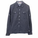 トミーヒルフィガー TOMMY HILFIGER シャツ ドット柄 襟とカフスにバティック柄裏地 長袖 両胸ポケット 綿100% XS ネイビー 紺 レディース