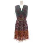 【中古】アンティック バティック ANTIK BATIK カシュクールワンピース チュニック ノースリーブ 総柄 ビジュー ひざ丈 シフォン 絹 シルク XS 紫 パープル 緑 グリーン /NU ■GY43 レディース 【ベクトル 古着】 251110