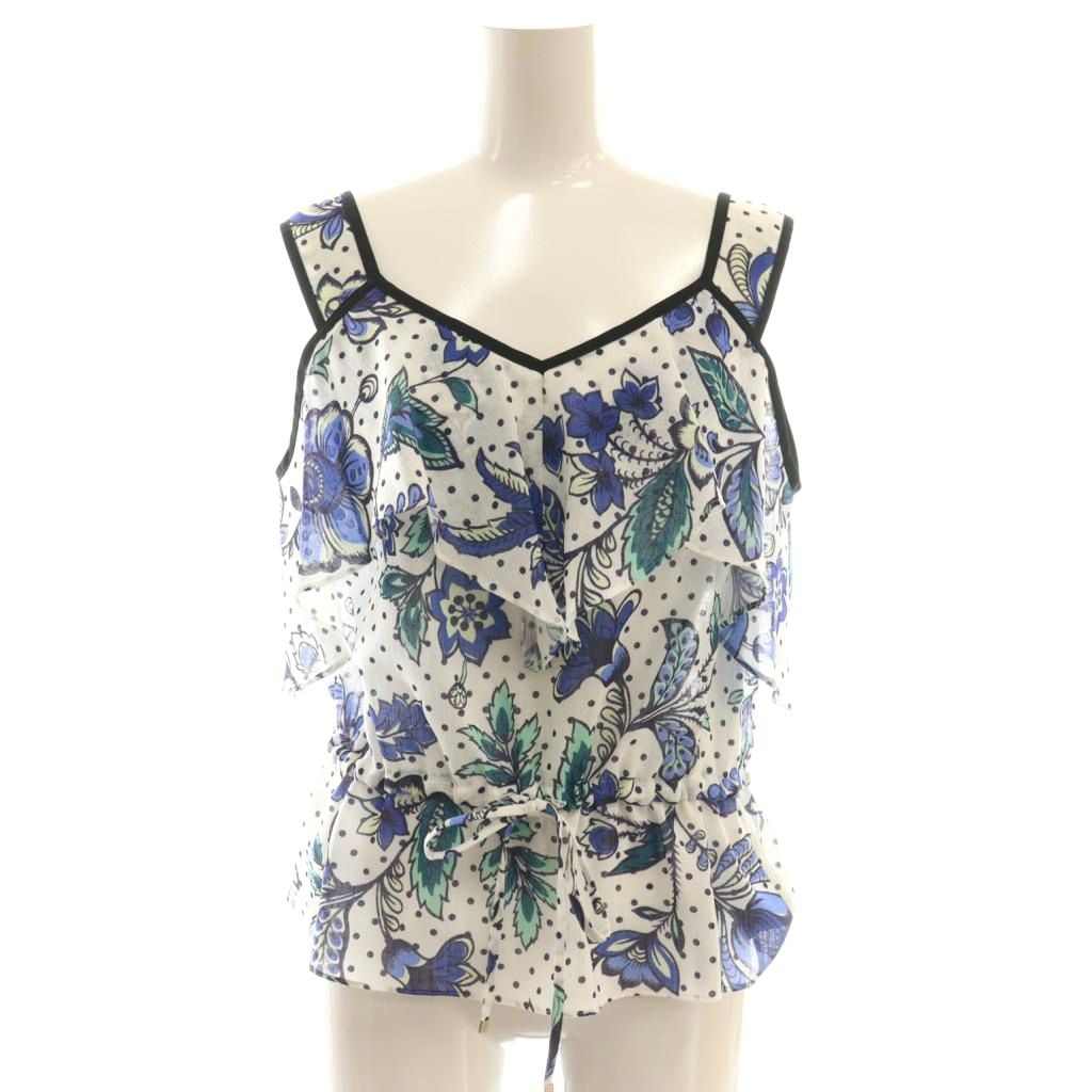 【中古】未使用品 ダイアグラム グレースコンチネンタル Diagram GRACE CONTINENTAL タグ付き バティックフラワートップ ノースリーブブラウス 36 青 ブルー 白 ホワイト 花柄 ドット柄 フリル 39241193-1 /AQ ■OS レディース 【ベクトル 古着】 251118