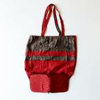 インドネシア バティック 折りたたみ エコバッグ 〈レッド〉 送料無料 ショッパー 総柄 A4サイズ 綿 100% エスニック アジアン 赤