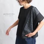 シャツ 5分袖 レディース バンドカラー キーネック 総柄 バティック風 花 レーヨン100 涼しい 軽い 通気性 着痩せ すっきり GENTIL ジャンティ (メール便50)