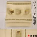 袋帯 紬袋帯 洒落袋帯 長尺 ロング 織物 帯巾約31cm 約8寸 帯長さ約450cm 約1丈2尺 ナチュラルホワイト系 生成り白色系 バティック柄 お仕立て