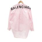 バレンシアガ BALENCIAGA ボウタイ ロングシャツ 長袖 ストライプ バックロゴプリント 32 ピンク /JS ■GY18 レディース