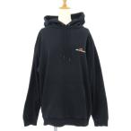 極美品◎BALENCIAGA バレンシアガ 2019年製 520497 ニュースウィング コットン100% バックロゴプリント 棒タイ 長袖シャツ ブラック 32 イタリア製 正規品 レディース【中古】