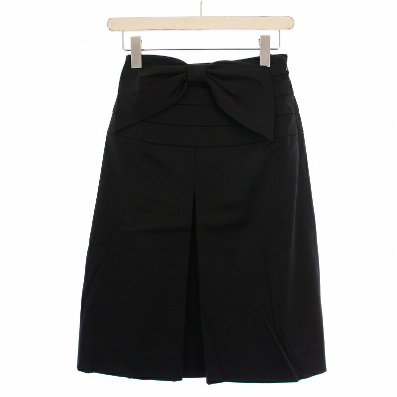 【中古】ヴァレンティノ ヴァレンチノ VALENTINO フレアスカート ひざ丈 リボン ウール 4 黒 /BM ■MU レディース 【ベクトル 古着】 250604