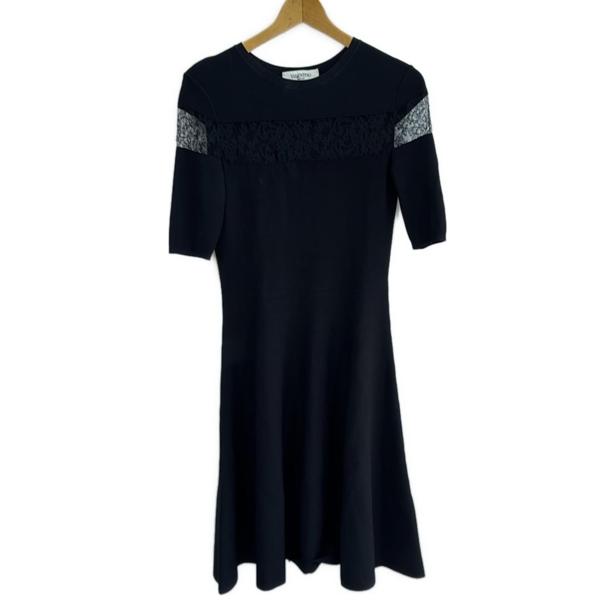 【RED VALENTINO】レッドヴァレンティノ レース切替Vネックニットワンピース ブラック 黒 サイズXS レディース 女性用 トップス RC2013【中古】