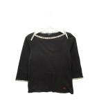 バーバリーブルーレーベル BURBERRY BLUE LABEL Tシャツ カットソー 七分袖 ロゴ刺繍 38 黒 ブラック FAF97-627-09 /HN