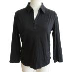 バーバリー ロンドン BURBERRY LONDON 開襟ポロシャツ カットソー 切替 ノバチェック 7分袖 2 約M 黒 ブラック ■YHS4 0916 レディース