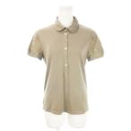 バーバリー ロンドン シャツ カットソー ラウンドカラー ハーフボタン 半袖 レース袖 ロゴ刺繍 コットン 2 M ダークベージュ