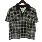 バーバリー ロンドン BURBERRY LONDON ポロシャツ 半袖 Vネック チェック柄 ロゴ 刺繍 F 黒 ブラック 白 ホワイト /XZ ■GY99