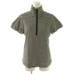 バーバリーゴルフ BURBERRY GOLF シャツ カットソー 2 半袖 ボーダー柄 ハーフジップ パフスリーブ 黒 ブラック 白 ホワイト /NU ■ECT レ