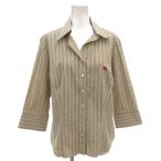 バーバリー ロンドン BURBERRY LONDON 開襟シャツ オープンカラー 15 ベージュ ストライプ柄 七分袖 ロゴ刺繍 /FF ■GY14 レディース