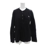 バーバリーブラックレーベル BURBERRY BLACK LABEL ヘンリーネック カットソー Tシャツ ロゴ刺繍 チェック切替 長袖 2 M 黒 ブラック