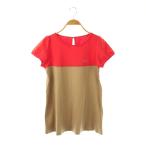 バーバリーブルーレーベル BURBERRY BLUE LABEL バイカラーTシャツ カットソー 半袖 38 オレンジレッド ベージュ /DO ■OS レディース