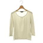 【中古】本物可バーバリー女性用オフホワイトxグレー横ストライプニットトップス半袖シャツ ○D11-148-4
