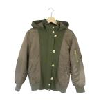 バーバリーブルーレーベル BURBERRY BLUE LABEL フライト ジャケット MA-1 中綿 ジップアップ ボタン フード 無地 カーキ サイズ38 国内正