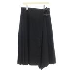 バーバリー ロンドン BURBERRY LONDON ウール ラップスカート ロング プリーツ切替 スカート 48 黒 ブラック