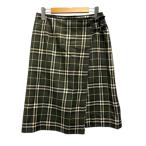 バーバリー ロンドン BURBERRY LONDON FXA43-073 ラップスカート フレア ウール ノバチェック ひざ丈 42 緑 グリーン レディース