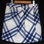 美品 BURBERRY バーバリー チェック柄 ウール タックプリーツ ラップミニスカート 8077461 サイズIT36 ホワイト×ブルー レディース 古着 中古