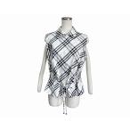 BURBERRY LONDON バーバリーロンドン ノバチェック コットン ノースリーブ 襟付き リボン2WAYシャツブラウス アイボリー系<USED>【送料無料】