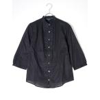 BURBERRY LONDON/バーバリー ロンドン ホースマーク刺繍 ピンタックフリルデザイン バンドカラー7分袖ブラウスシャツ [LSHA75478]