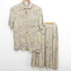 良品 BURBERRY'S バーバリーズ ヴィンテージ ペイズリー柄 ブラウス スカート セットアップ 大きいサイズ 13/15 ベージュ系 レディース 古着 中古