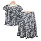 良品 BURBERRY LONDON バーバリー リーフプリント 半袖 ブラウス ひざ丈 スカート セットアップ 40/38 ブラック ホワイト レディース 古着 中古