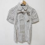 BURBERRY BLUE LABEL バーバリーブルーレーベル ブラウス サイズ:36 ストライプ リボン ホースロゴ刺繍 ホワイト/ベージュ