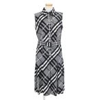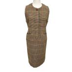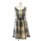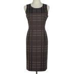 バーバリー BURBERRY チェック柄 ノースリーブ ワンピース ひざ丈 ワンピース スカート 毛 絹 ブラウン レディース 中古